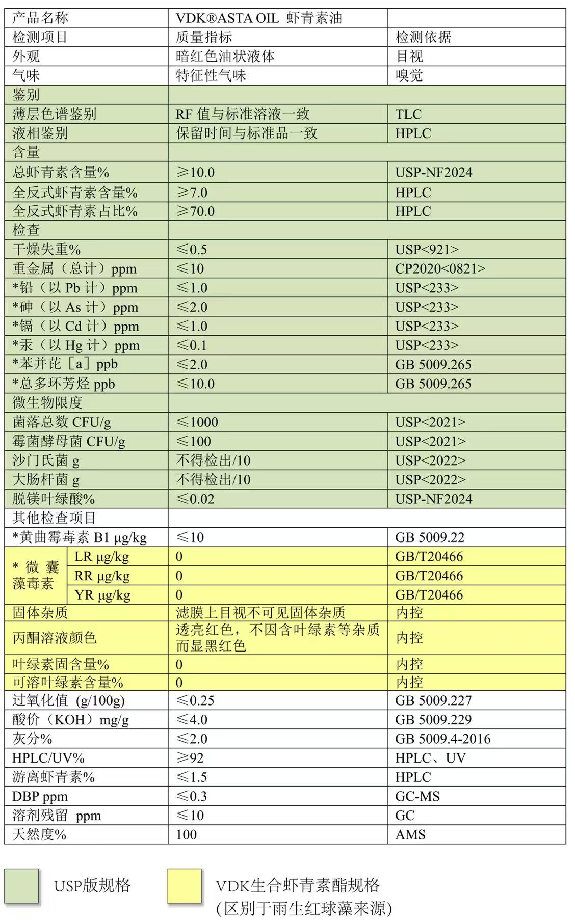 VDK®酯化态虾青素符合USP标准