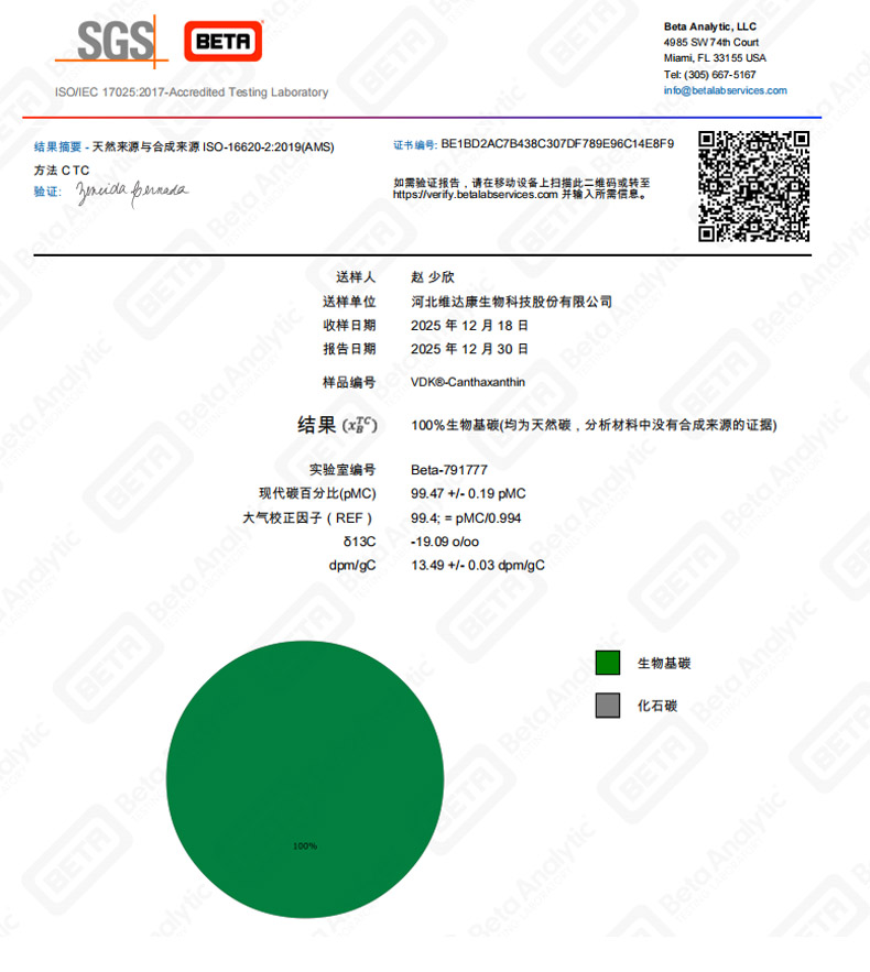 权威检测数据佐证,天然度指标达100%(传统化合工艺产品天然度为0),更契合天然原料市场需求;